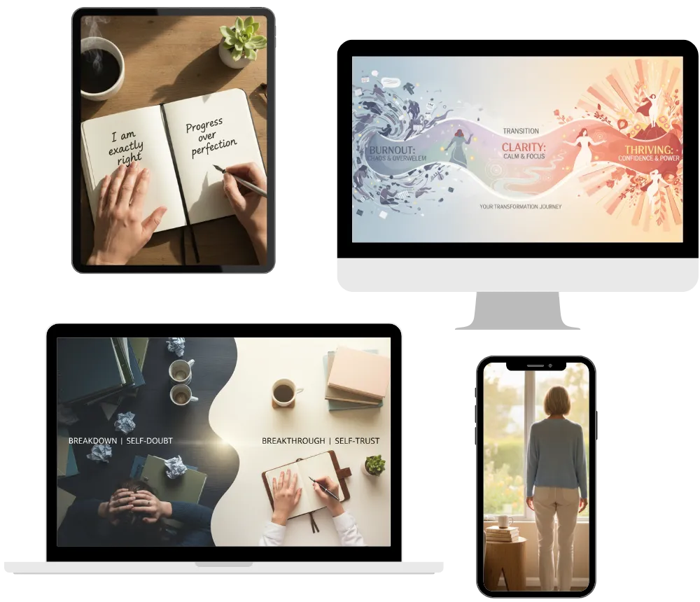 I guide women navigating major life transitions, offering practical resources, proven frameworks, and genuine support to help you reclaim your energy, clarity, and confidence. Every step is anti-hustle, permission-giving, and grounded in real-life experience—so you can move forward sustainably.